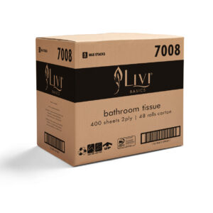 Livi Basics Toilet Tissue 2ply – 7008 is a 2ply, 400-sheet conventional toilet paper roll, individually wrapped to maintain presentation and optimal hygiene standards. Ideal for small and medium washroom traffic zones, the 7008 toilet paper roll is ply bonded for dependability and comfort. Available in bulk 48 pack cartons for convenience.